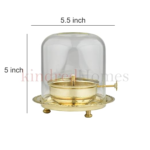 KindredHomes Brass Akhand Jyot Diya with Borosilicate Glass Cover for Pooja | Traditional Eternal Flame Lamp for Home Temple | Oil Lamp with Glass Chimney (Gold Finish)