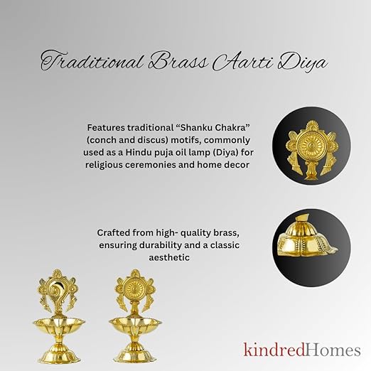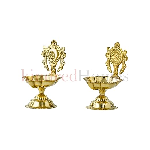 • ✅ Set of 2 Elegant Brass Diyas – Includes two handcrafted oil lamps with traditional Shankh and Chakra designs.