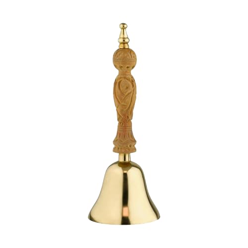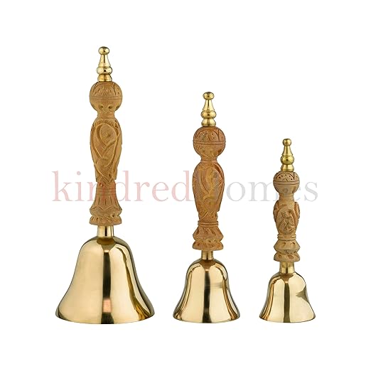 KindredHomes Bronze Pooja Bell with Wooden Handle – Traditional Indian Pooja Ghanti for Puja, Meditation & Decor (Small 4x4x15 cm)
